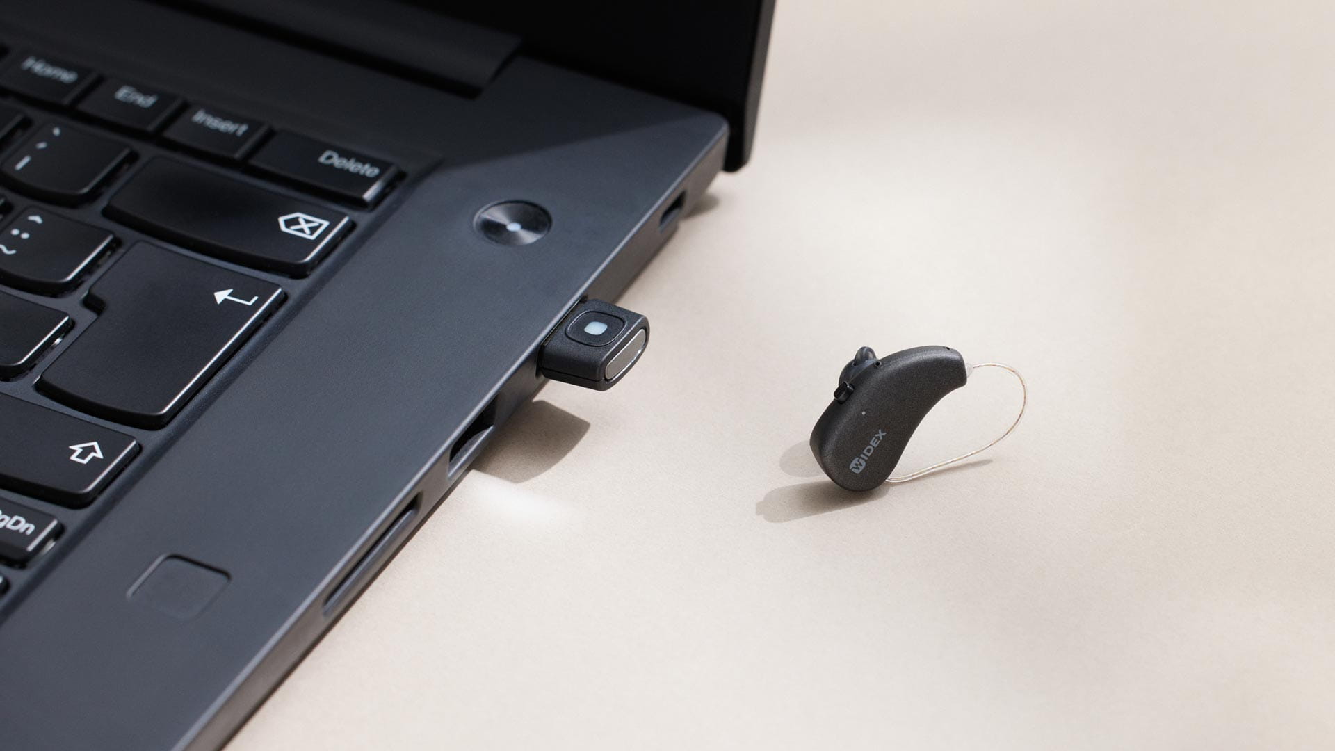 Widex SoundConnect überträgt Audiosignale in klarer Klangqualität direkt in die Hörgeräte und ermöglicht Ihren Kunden damit ein großes Plus an Hörkomfort bei verschiedenen PC- und Laptop-Anwendungen wie MS Teams, Zoom, Musik-Playern oder Streamingdiensten.