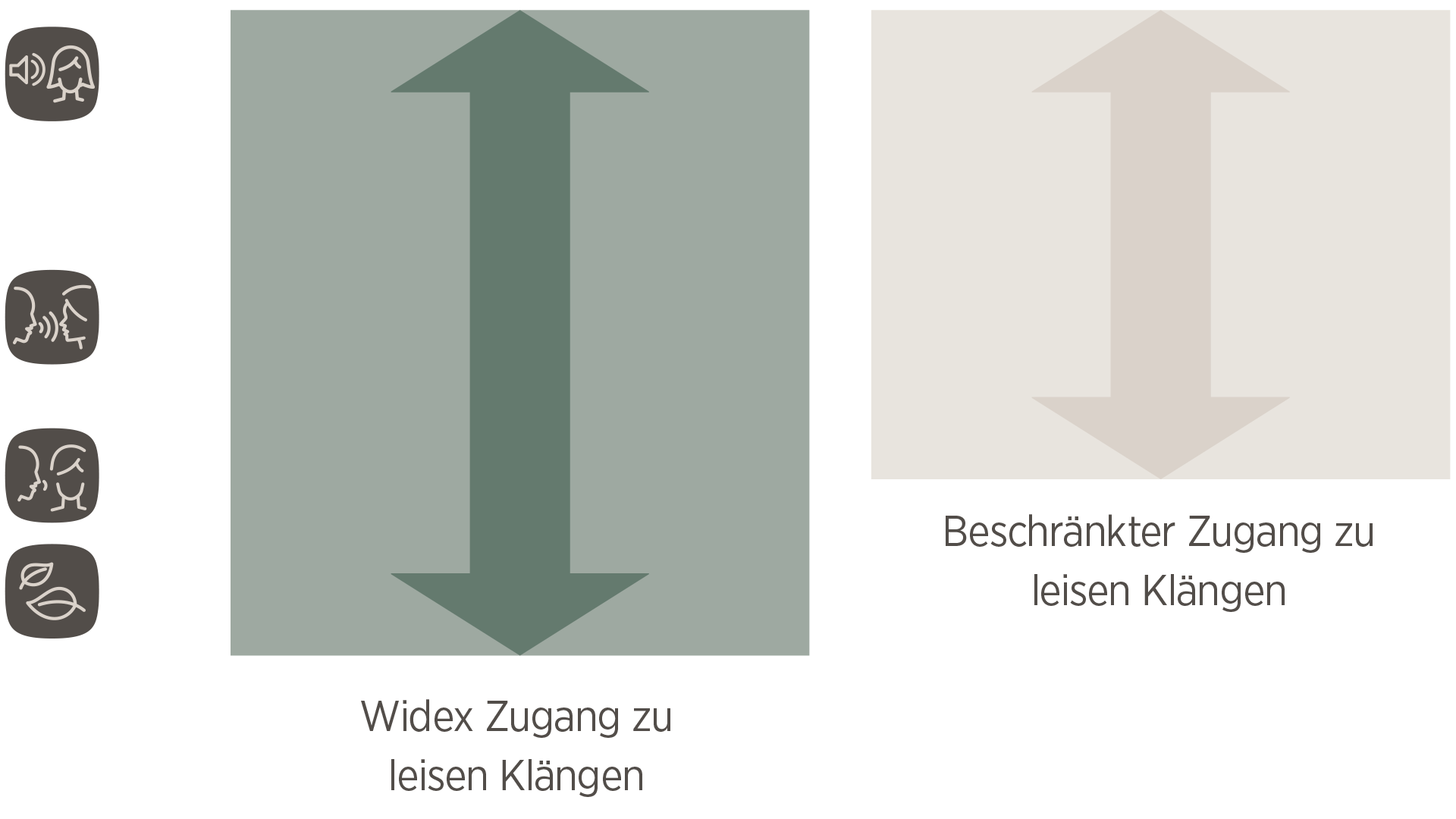 Widex verwendet branchenweit eine der höchsten Abtastraten und macht mit der linearen Eingangsdynamik von 5 dB bis 113 dB SPL damit die gesamte Hörwelt authentisch wahrnehmbar. Durch die Hörbarkeit leiser Sprachanteile wird auch das Sprachverstehen unterstützt. Die Verarbeitung leiser Eingangssignale führt zu einer einzigartigen Hörweite, die es so nur bei Widex gibt. Widex balanciert hierbei auch Adaptions-Zeiten der Verstärkung sowie weitere automatische Prozesse aus.