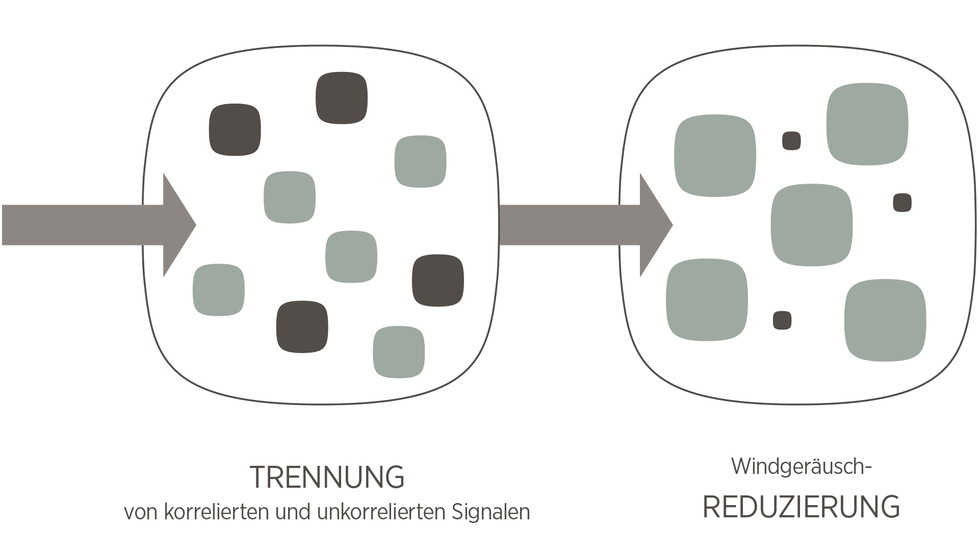 Unsere fortschrittliche Analyse passt sich ständig an, um störende Hintergrundgeräusche unter der Hörschwelle des Nutzers zu halten, um die Sprachverständlichkeit nicht zu beeinträchtigen.