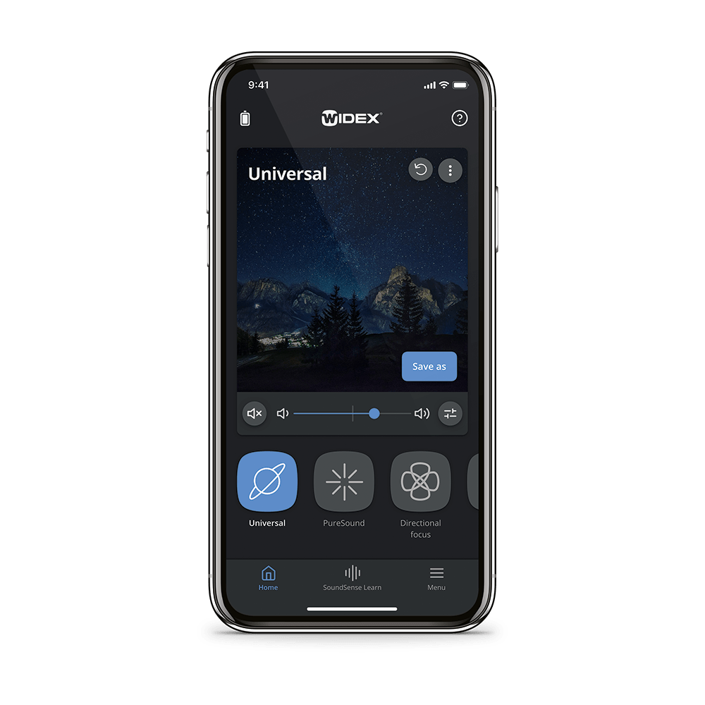 All other models use the Widex Tonelink app, which lets you simply and discreetly adjust key functions such as volume and programs. Tonelink does not feature SoundSense Learn, which guides you to personalised hearing.