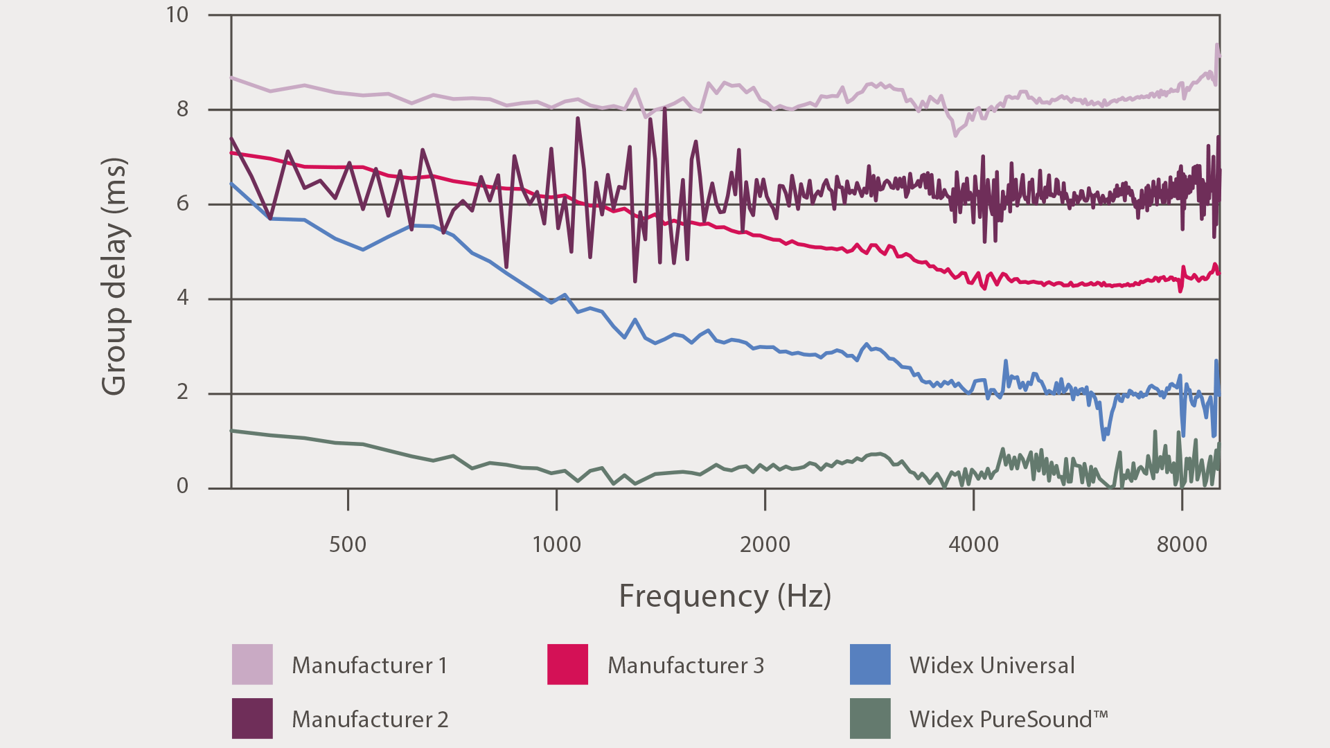 In all other digital hearing aids, delay due to signal processing leads to a sound syncing issue called the comb-filter effect. With our PureSound™ technology, we've cut this delay to just 0.5 ms, making sounds more natural and eliminating that metallic echo.