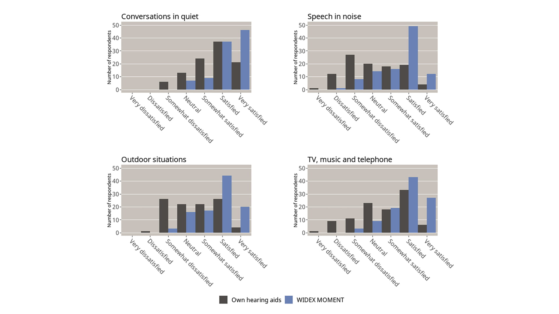For these reasons, the survey reported below focused on satisfaction with sound quality in itself, as well as the experience in diverse situations of real-life hearing with Widex MOMENT hearing aid.