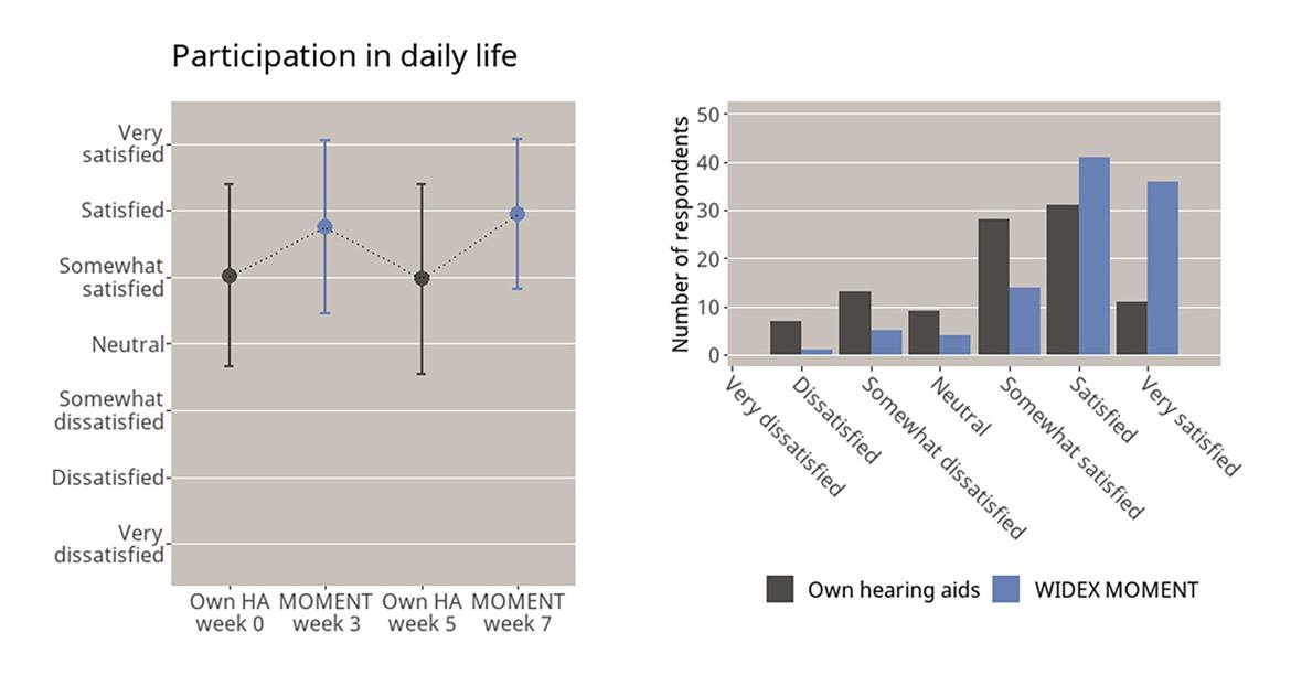 The results reported in this article show the importance of sound quality in many different moments of real life, confirming the Widex design philosophy that sound quality should be central. We see solid advantages for the MOMENT devices for sound quality satisfaction in general, as well as for ratings of a representative selection of real-life situations, and for the key factor of participation in daily life.