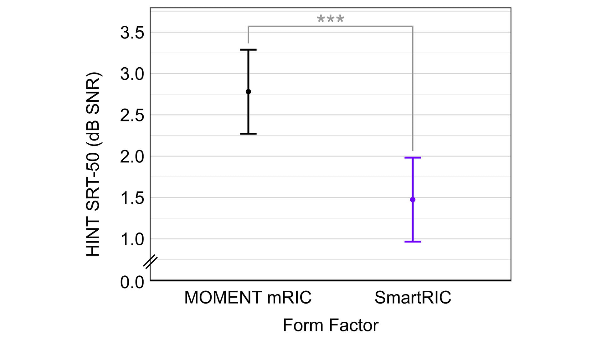This study from the University of Northern Colorado shows the beneficial effect of the Widex SmartRIC design on performance on the Hearing In Noise Test (HINT). The improved microphone angle of the SmartRIC gives an average advantage of more than 1.5 dB for speech understanding in noise, compared to a RIC with a more standard angle. This confirms previous studies showing the improved microphone angle and the associated improvement for speech in noise with the SmartRIC.