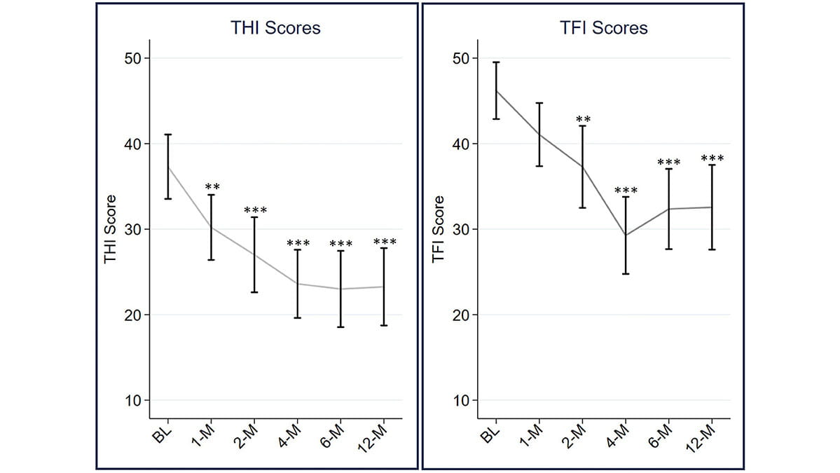 The study explores the effects of Widex Zen therapy on tinnitus-related distress. Twenty participants with mild to moderate tinnitus distress were fitted with MOMENT 440 hearing aids that included three sound therapy sounds. The therapy sounds were selected by participants from the available Widex SoundRelax and Zen sounds that consisted of fractal music, nature sounds, and combinations of the two. Over the course of twelve months, participants reported reduced tinnitus-related distress as measured on tinnitus handicap inventory (THI), tinnitus functional index (TFI), as well as tinnitus awareness and annoyance. The improvement plateaued at four months after device fitting and was sustained over the whole study period. Notably, the improvement was related to daily hours of Zen therapy use, but not to amplification-only or overall device use. This suggests that Zen therapy plays a pivotal role in alleviating tinnitus-related distress.