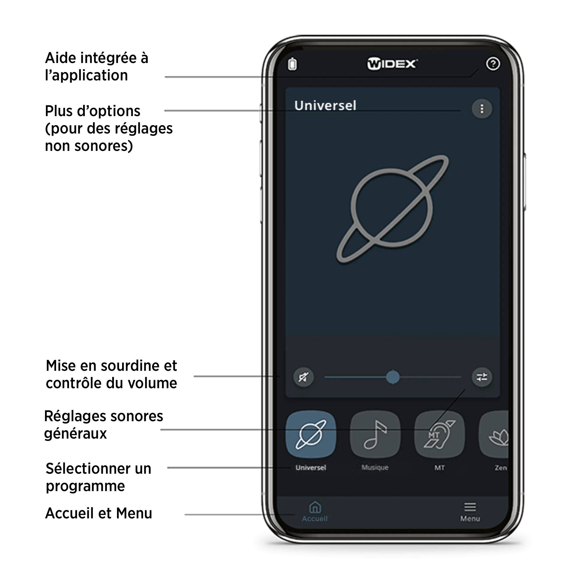Avec WIDEX MAGNIFY™, les utilisateurs ont la possibilité de contrôler entièrement leur aide auditive, à l’aide de l’application WIDEX MAGNIFY™, sur leur smartphone Apple ou Android.